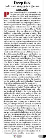 - PM Narendra Modi’s visit to the Maldives was his first foreign trip in his third term.