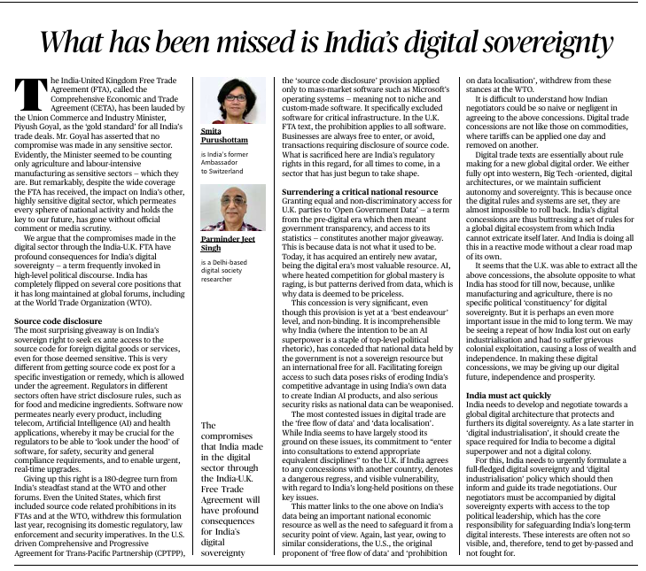 - Weakens India’s digital sovereignty — the ability to control its digital infrastructure, systems, and data.